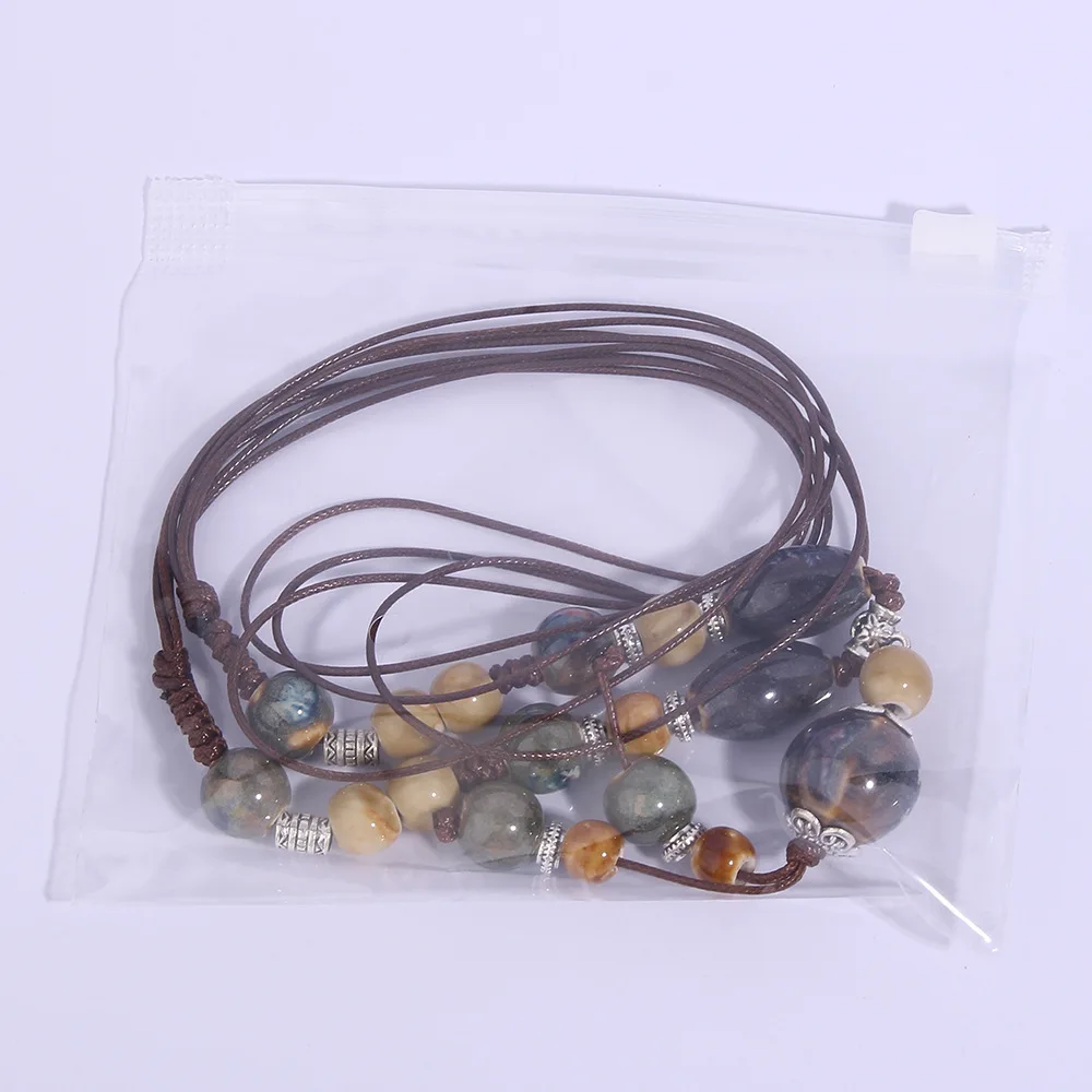 Vintage Ceramic Adjustable Necklace Long Ethnic Style Women's Sweater Chain Cotton Linen Clothing Accessories Pendants Jewelry