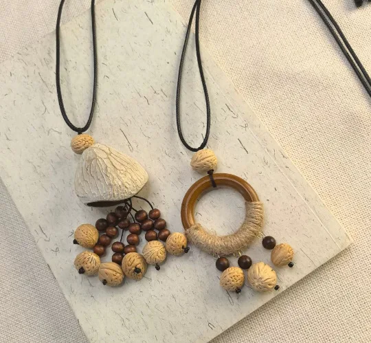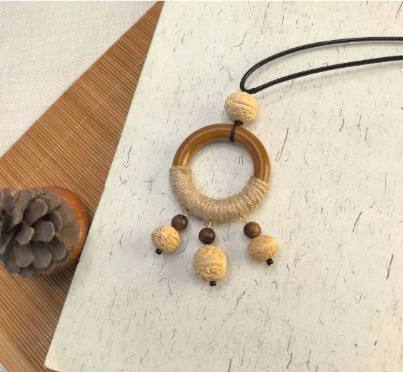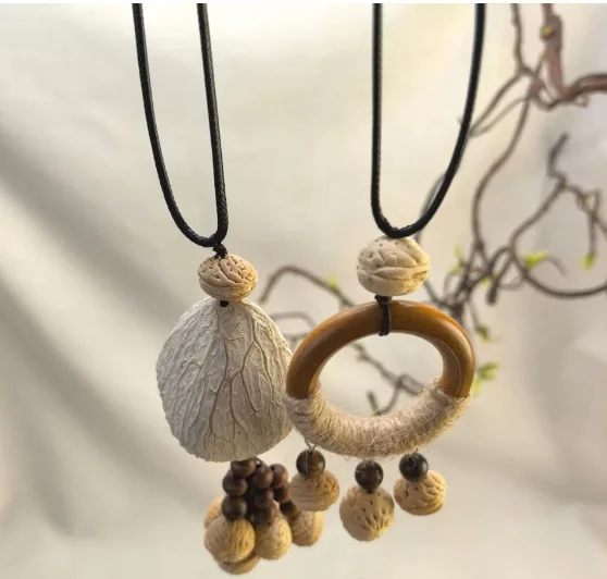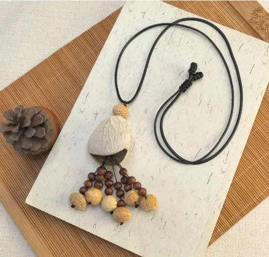 Yunyu Fruit Shell Ringing Necklace Hanging Bell Walnut Fruit Pendant Sweater Chain Cotton and Hemp Clothing Accessories